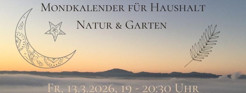 In diesem Workshop erfährst du, wie du den Mondkalender praktisch anwenden kannst – beim Gärtnern, Kräutersammeln und im Haushalt.