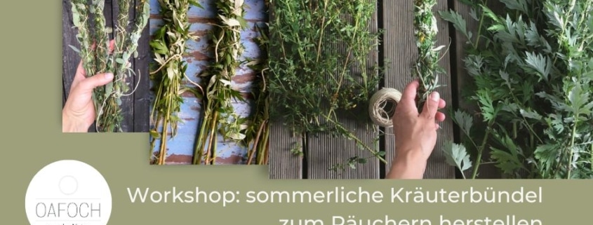 🌿 In diesem Workshop zeige ich dir, wie du Räucherbündel aus Sommerkräutern schnürst – diese werden später zur Wintersonnenwende verräuchert.